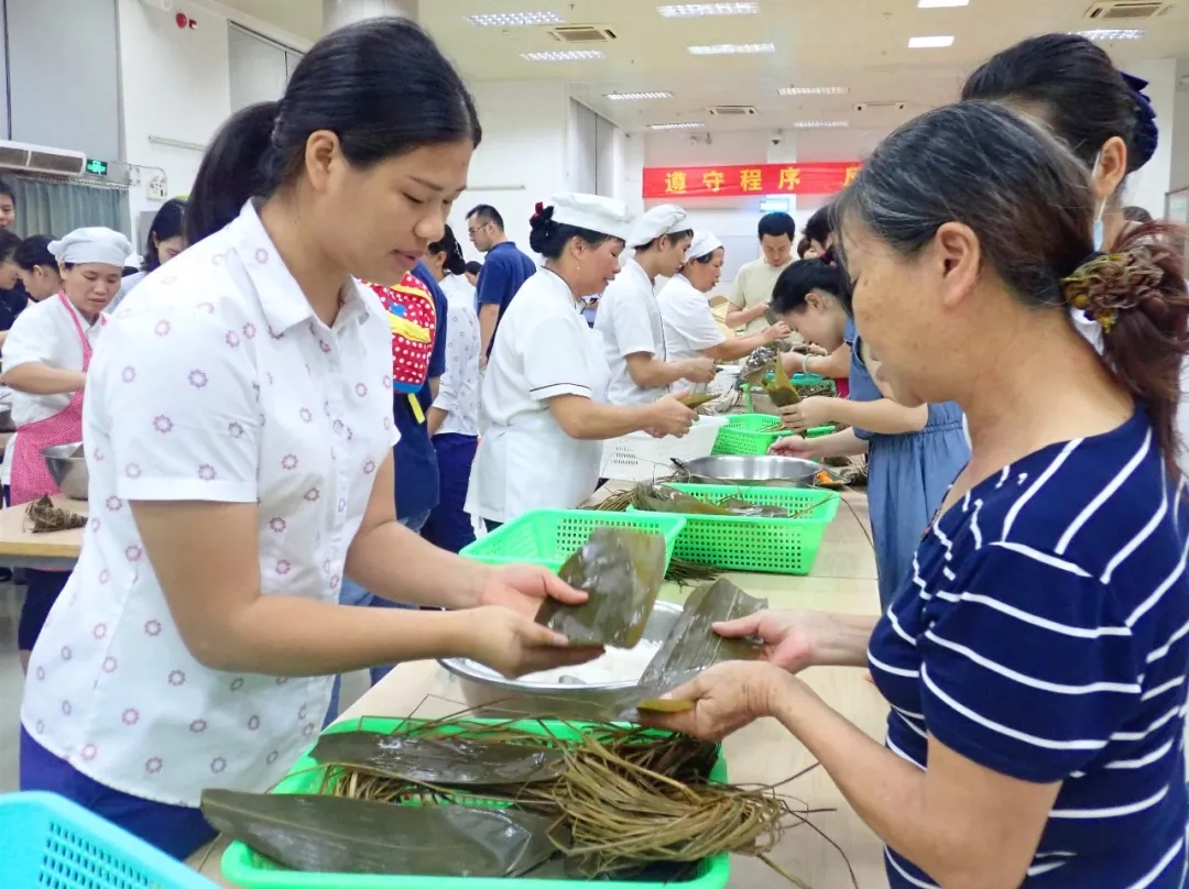 ▲陸豐分公司:餐廳員工利用周末時(shí)間制作手工粽子,為員工送上節(jié)日祝福。