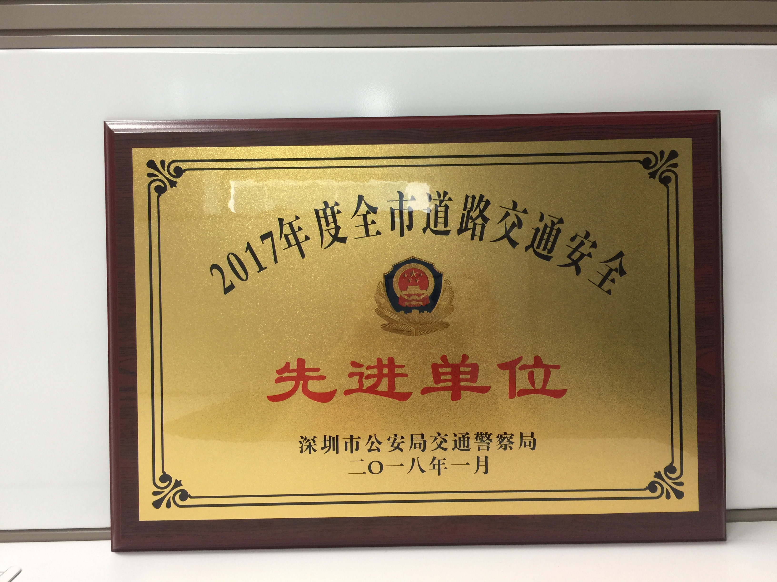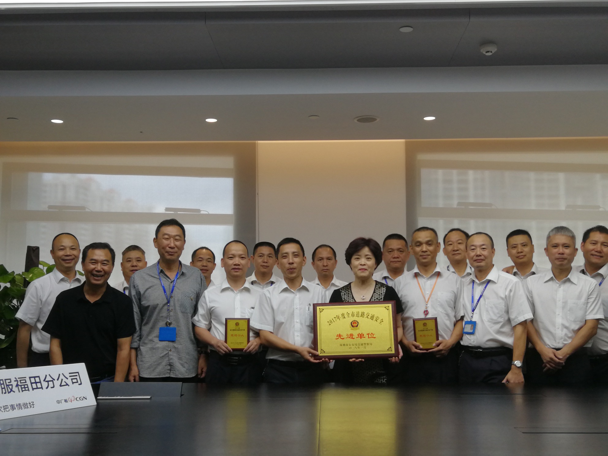 喜報,近日,在深圳市車屬單位交通安全大檢查評比活動中,中廣核服基地服務事業部旗下深圳市核電環通汽車服務有限公司(簡稱“環通公司”)被深圳市公安局交通警察局評為“2017年度全市道路交通安全先進單位”,福田分公司中廣核大廈車班駕駛員楊偉國、劉潤群獲得“2017年度全市道路交通安全行駛先進個人”榮譽稱號。