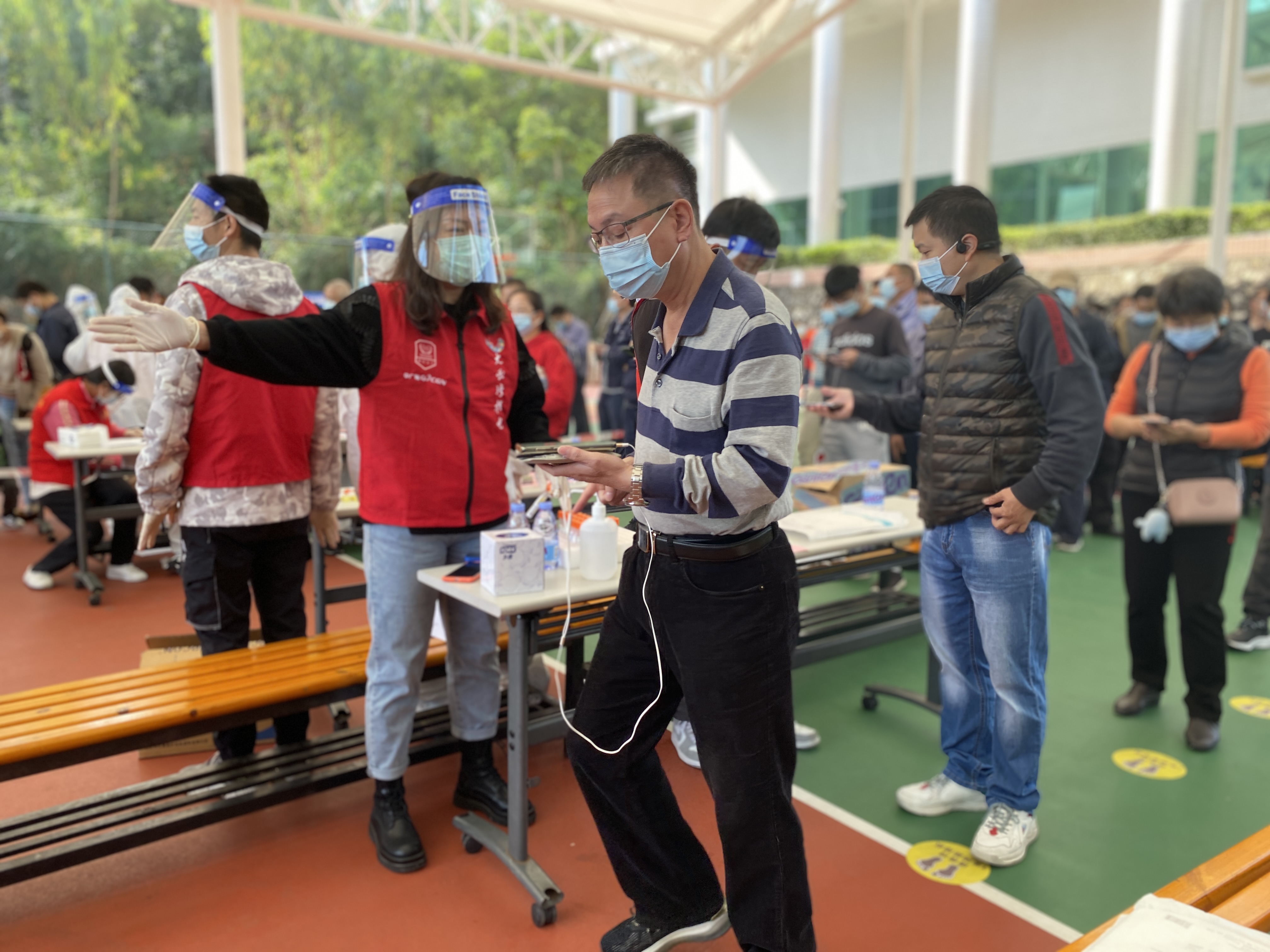 18日上午9點,大亞灣基地內全員核酸檢測按計劃準時有序進行,當天完成2300余人的核酸檢測工作。現場,信息驗證區及采樣區的志愿者無縫銜接,“排隊、掃碼、采樣”整個流程運轉順暢,整場核酸檢測聚集時間短、檢測效率高,得到了基地內員工的一致好評。
